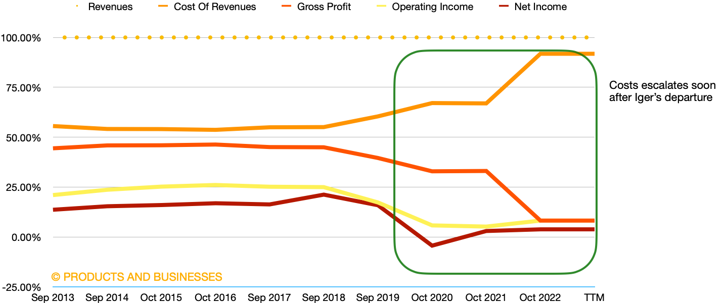 Rising costs after Iger’s departure became the true cause of shareholders' frustration with Disney. This is poor expectation setting by Chapek. If Disney expected a rise in the cost of production based on the schedule Disney had to produce content shareholders should have been appropriately notified.